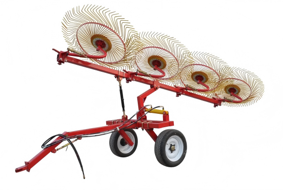 Оваа серија на трактор сено гребло се совпаѓа со трактор со четири тркала. Работниот дел е неколку дискови со дискови со заби.